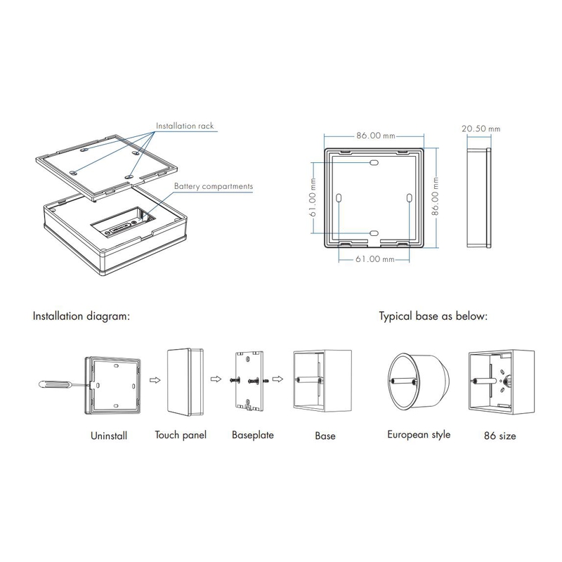 Nástenný diaľkový ovládač/stmievač T21 dotykový, 4-kanálový