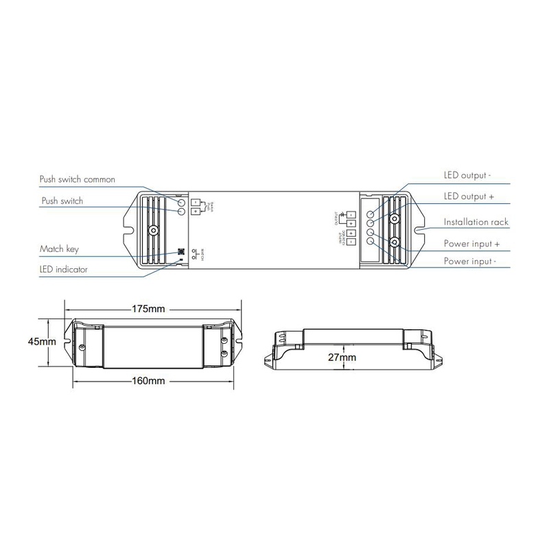 • riadiaca jednotka/prijímač pre riadenie/stmievanie jednofarebných LED pásov a svetelných zdrojov PWM signálom