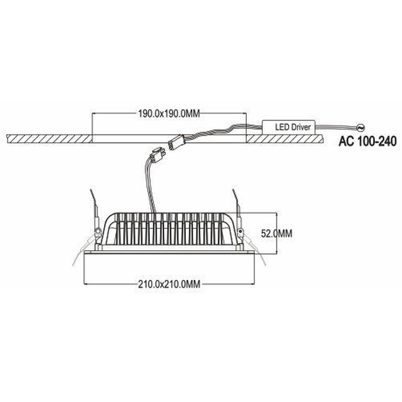 Zápustné LED svietidlo do sadrokartónových stropov v štvorcovom prevedení.